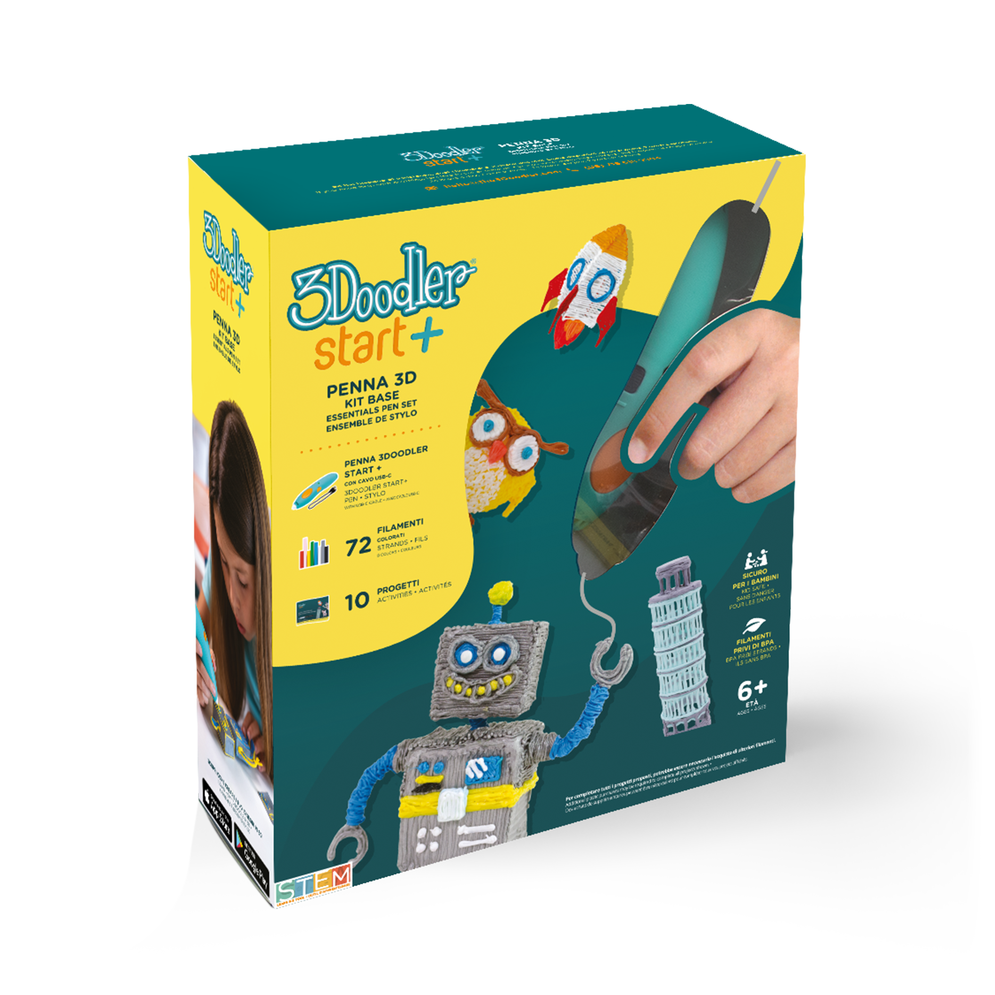 La penna 3Doodler Start+ è estremamente facile da usare! Per iniziare il gioco creativo, basta inserire il filamento del colore desiderato nell’apposito inserto. Dopo pochi istanti, il tuo bambino potrà iniziare a creare: l'unico limite è la fantasia! La plastica che fuoriesce dalla punta di 3Doodler Start+ è calda, ma non bollente; in questo modo, può essere facilmente modellata con le mani. L’assenza di componenti esterne calde e la velocità di solidificazione dei filamenti in plastica rendono 3Doodler Start+ un prodotto sicuro per i più piccini.